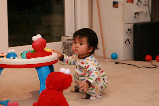Another new development is that I took my first step, also on Christmas. I'm very wobbly, and I fall soon after my first step (or two), but it's all about practice now. Daddy thinks I'll walk by the time I'm a year old. We'll see...until next week!